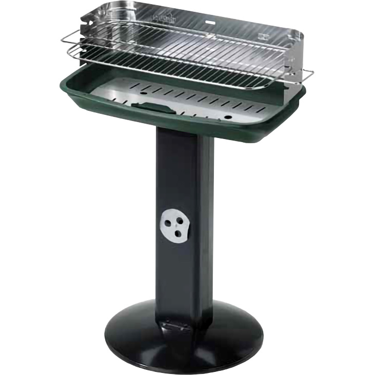 struttura in acciaio verniciato.Paravento in acciaio inox con innesto di sicurezza.Robusto braciere in acciaio alluminato.Griglia in acciaio cromato, regolabile in quattro posizioni.Gamba con presa d?aria regolabile.Piano di cottura cm 60x36Altezza 86 cm